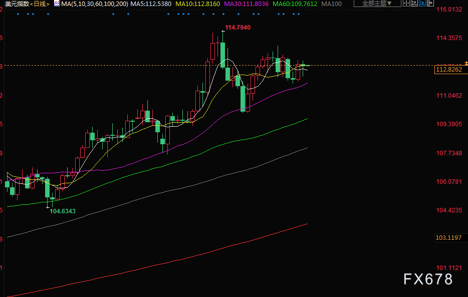 美元指数下跌0.10%,至112.86,分析师称这可能是由于盘整。欧元兑美元上涨0.13%,至0.9785美元。