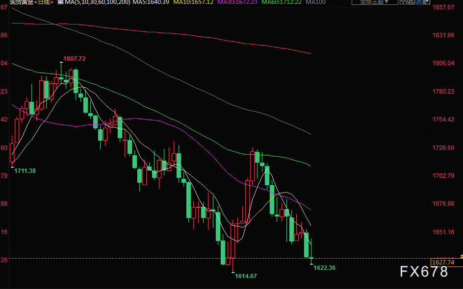 费城联邦储备银行主席哈克表示,在高通胀水平下,美联储还没有完成提高短期利率的目标。美国利率上升增加了持有非孳息黄金的机会成本。