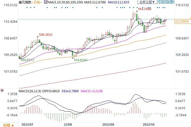 北京时间10月20日13:03,美元指数报113.07