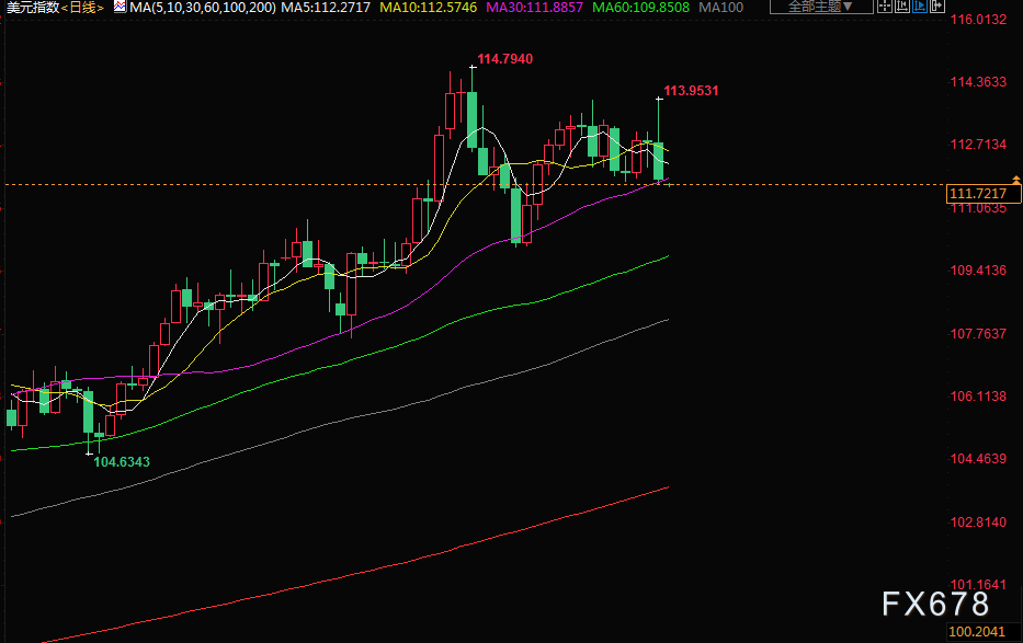 北京时间周一(10月24日)亚市早盘,美元指数交投于111.74附近;美元上周五承压,一些官员对大幅加息以对抗通胀表示出更大的担忧。美元兑日元创8月10日以来最大单日跌幅,日本政府和央行在外汇市场通过购买日元、抛售美元进行了干预;金价录得周线上涨,油价手收高,对需求增强的希望和美元下跌盖过了对全球经济下滑和加息对燃料使用影响的担忧。