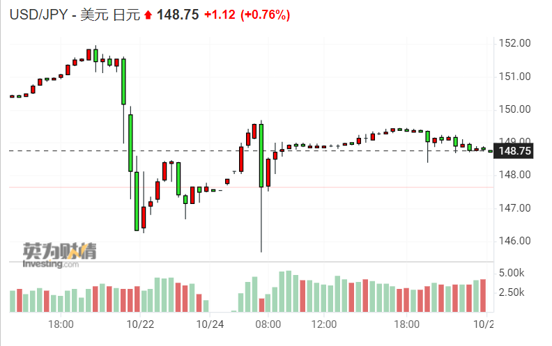 在上周五晚间,日本当局也进行了干预汇市的行动,推动日元快速走高收复多个关口,但很显然,日本的干预效果极为有效,几百亿美元投下去,然后在市场上掀起一点涟漪,随即便被抚平,干预的影响被抹去了。