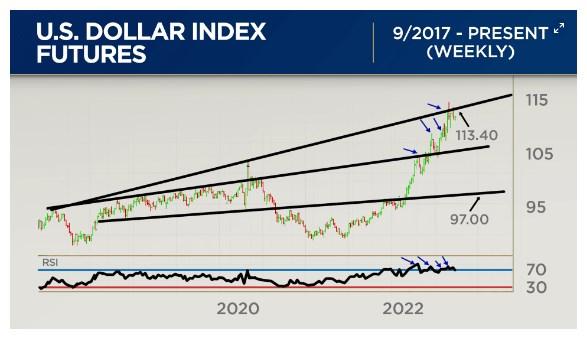 美国财经名嘴警告,周线图显示美元可能正在见顶!