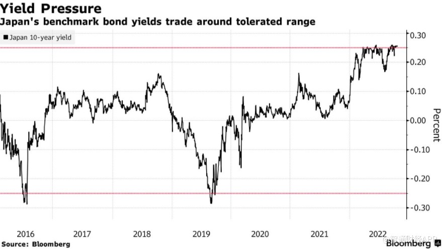 日本基准债券收益率在可容忍区间附近交易