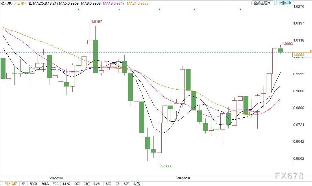 北京时间10月27日15:21,欧元兑美元报1.0063/64