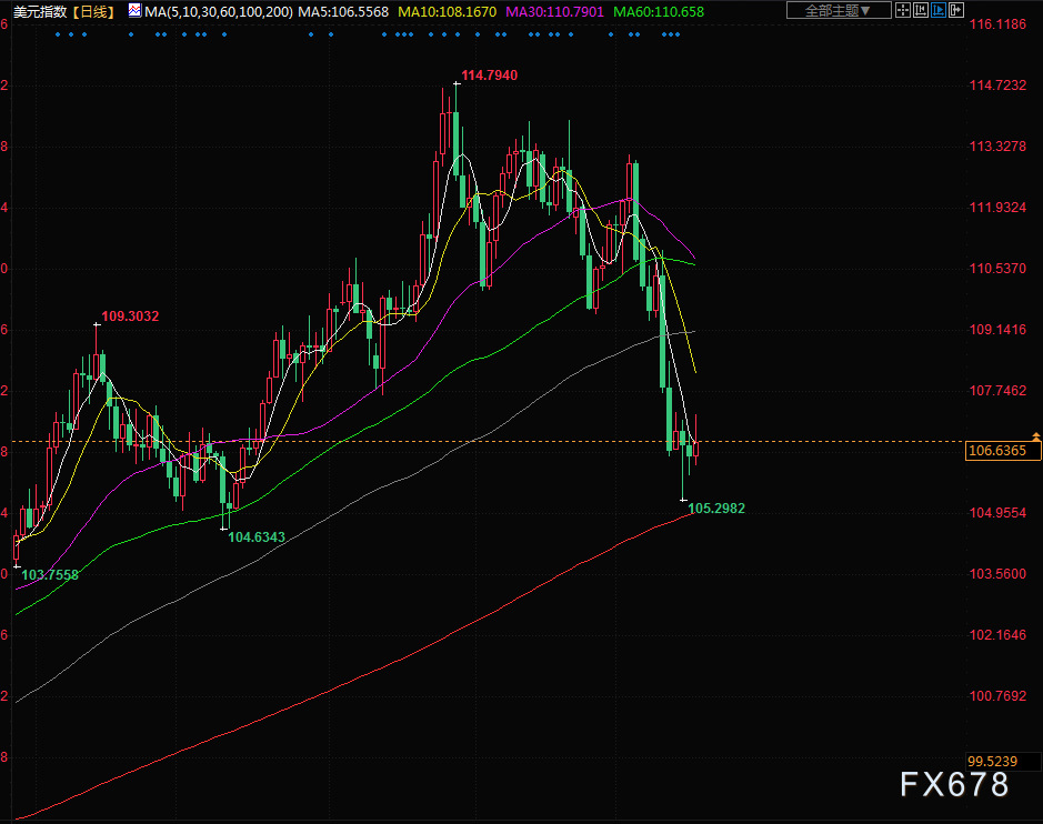 北京时间周五(11月18日)亚市早盘,美元指数交投于106.66附近;美元周四上涨,美国国债收益率上升,投资者关注美联储官员的鹰派发言。英镑下跌,英国政府的最新预算案并未打动投资者;金价下跌,美联储官员表示美国通胀需要进一步放缓,市场将这解读为利率将更高,导致黄金隔夜遭遇抛售;油价下跌超3%,疫情蔓延和对美国更激进加息的担忧挤压了需求。