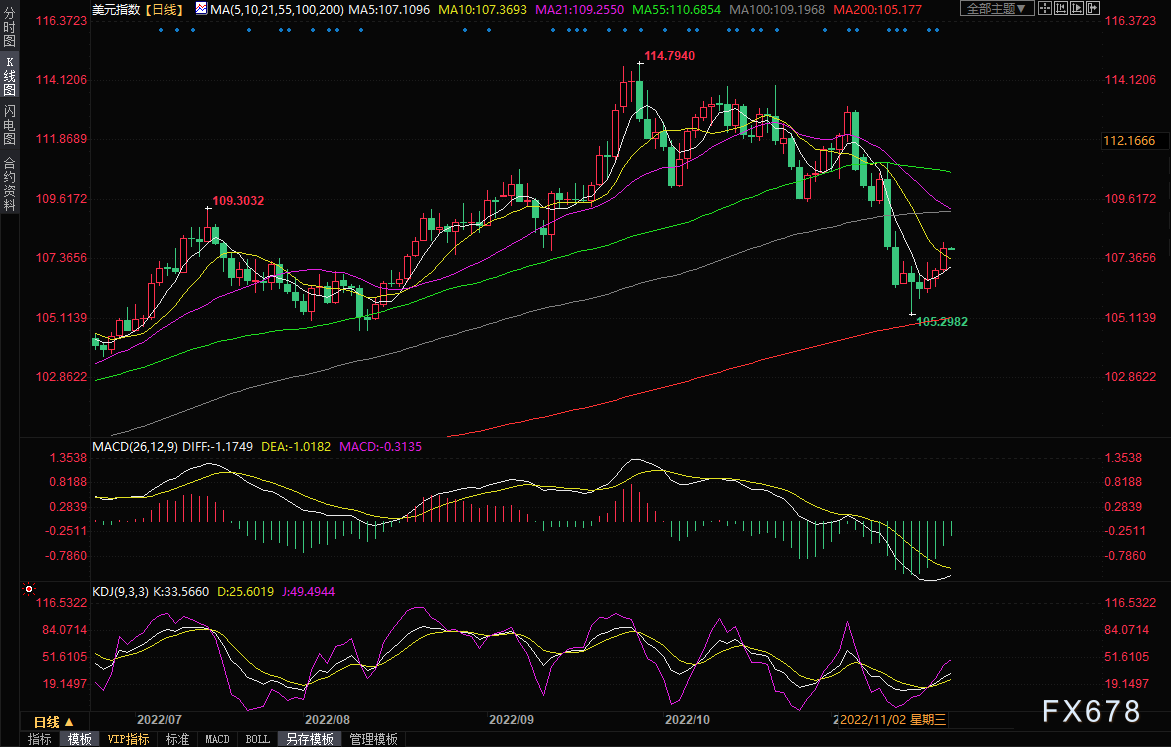 周二(11月22日)亚洲时段,美元指数在近一周高位窄幅震荡,目前交投于107.80附近,因为亚洲大国疫情防控加剧了市场对全球经济衰退前景的担忧,周一澳元、纽元等商品货币表现较差,美元的避险需求有所回升,帮助美元指数创逾一周新高至108.00附近,收报107.82,涨幅约0.77%,为连续三个月交易日上涨。本交易日需要重点关注美联储官员讲话和新冠疫情相关消息。