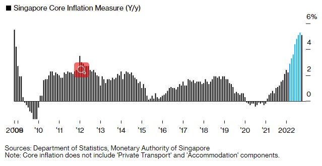 新加坡金融管理局和贸工部周三发表联合公报显示,新加坡10月份核心通胀率为5.1%,自今年2月以来首次出现下降,低于经济学家预测的5.3%的增幅中值。据了解,新加坡10月份核心通胀率增速下降,是由电力、天然气、零售和服务价格上涨趋势放缓所驱动的。而核心通胀率将私人交通和住宿成本排除在外,精确地体现出新加坡的家庭支出情况。