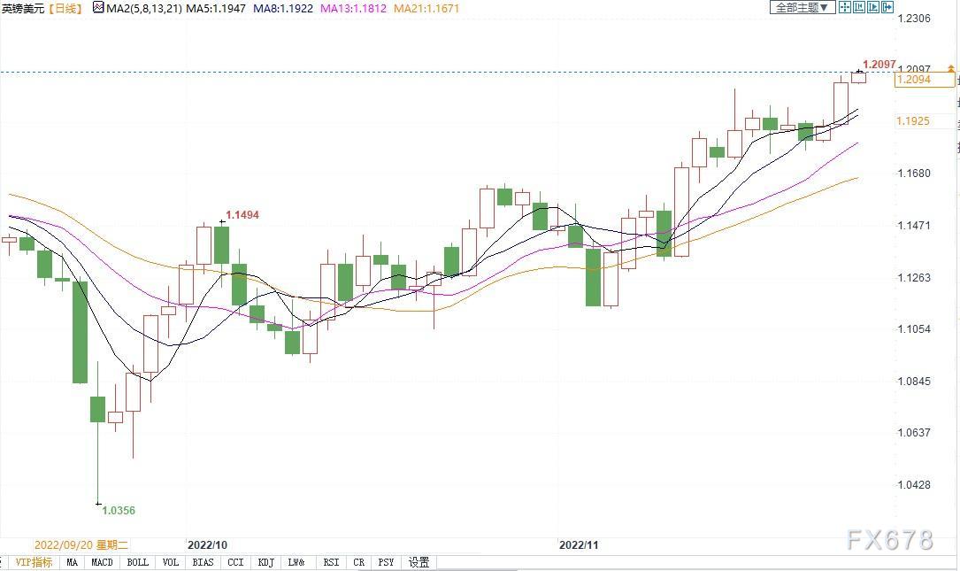 北京时间11月24日11:02,英镑兑美元报1.2095/97