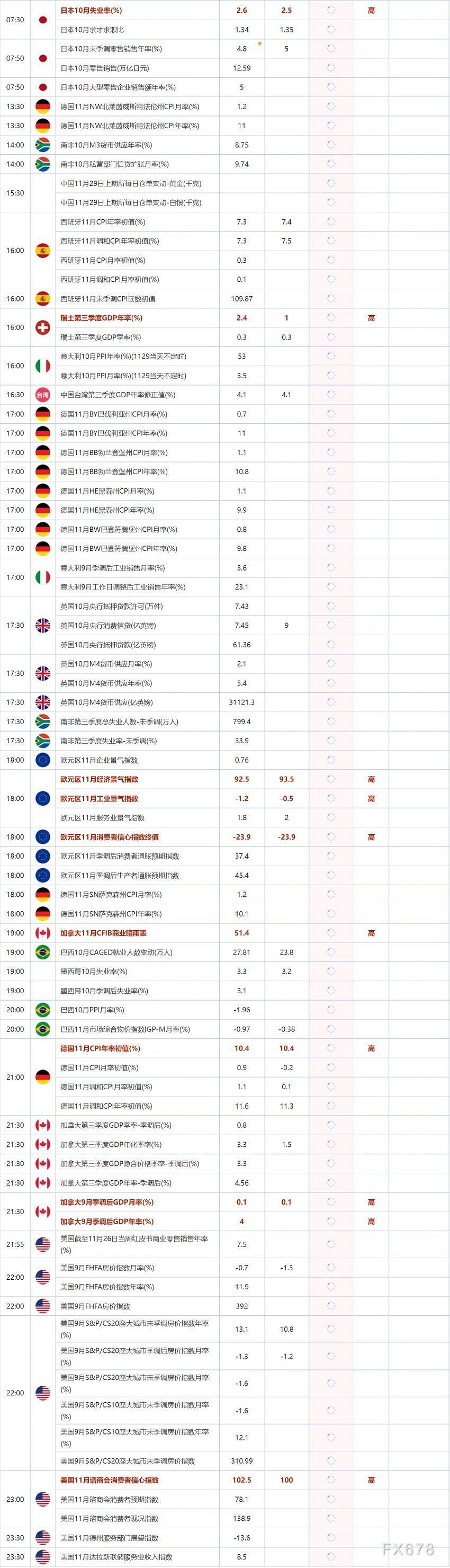 11月29日重点数据和大事件前瞻