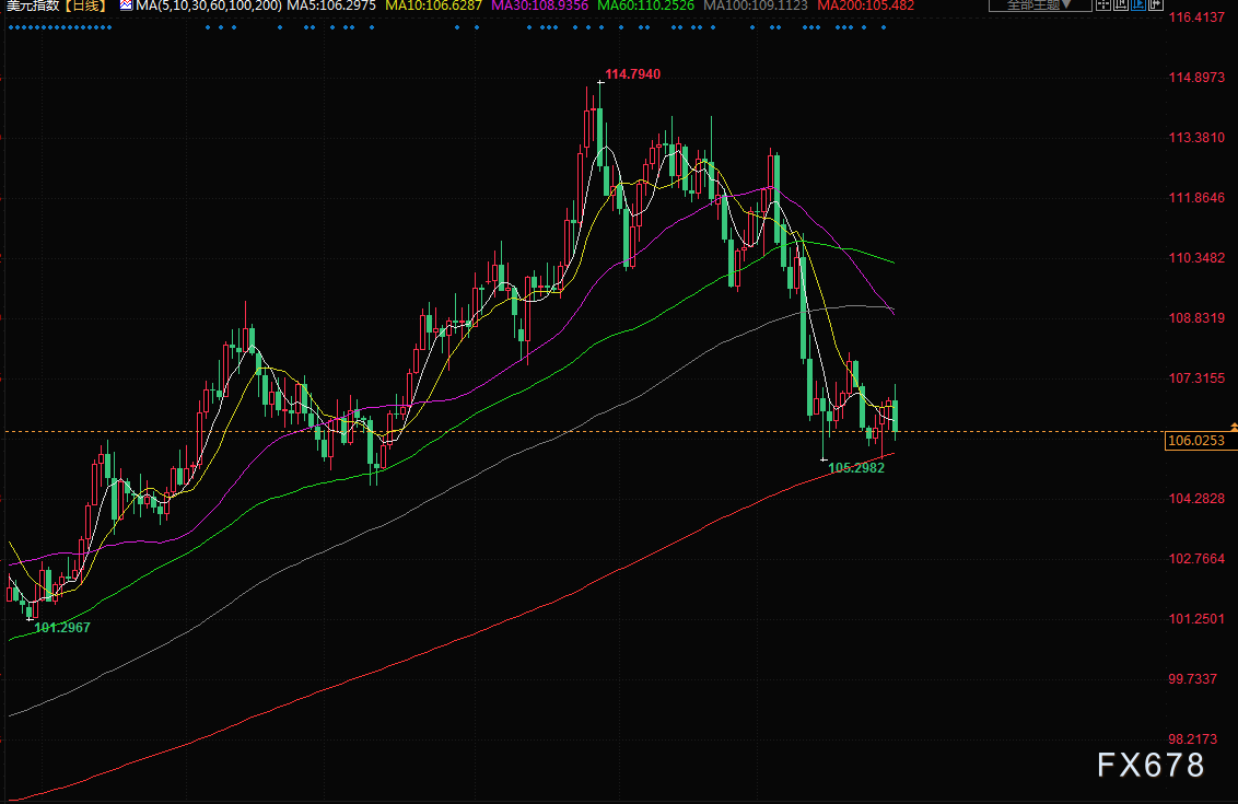 北京时间周四(12月1日),美元交投于106.20附近;美元周三下跌,此前美联储主席鲍威尔表示,美联储可能“最快在12月”放慢加息步伐,这扶助美元指数录得2010年以来最差月度表现,金价上涨,金价11月创下2020年中以来的最佳月度表现;油价收高近2%,受助于有迹象表明供应趋紧,美元走软,且对需求复苏的乐观情绪。