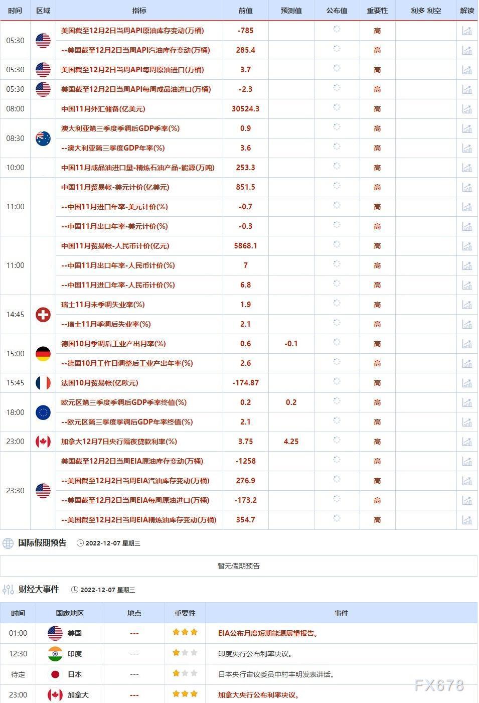 ③12月7日(周三)关键字:美国截至12月2日当周API和EIA原油库存变动,加拿大央行公布利率决议