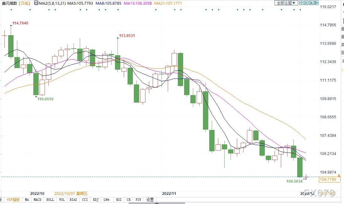北京时间12月2日11:46,美元指数报104.71