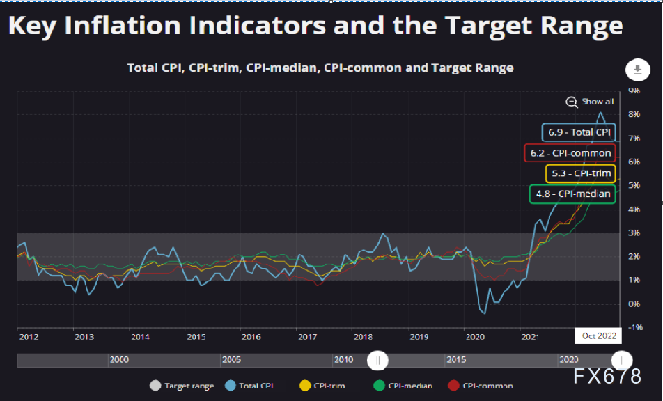在央行声明中,高企的通胀依然是其最关注的话题,加央行重申将通胀率降至2%的承诺,并指出当前的通胀率和短期通胀预期依然过高。