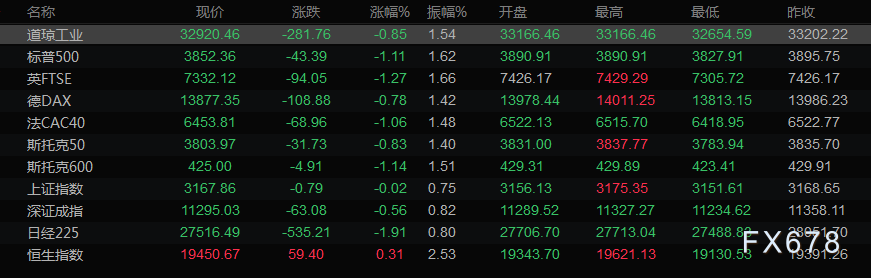 上周,道指下跌1.66%,标普500指数下跌2.09%,纳指回落2.72%。货币市场押注显示,美联储明年将至少加息两次,每次加息25个基点,年中触及约4.8%的终端利率,到2023年底利率降至4.4%左右。