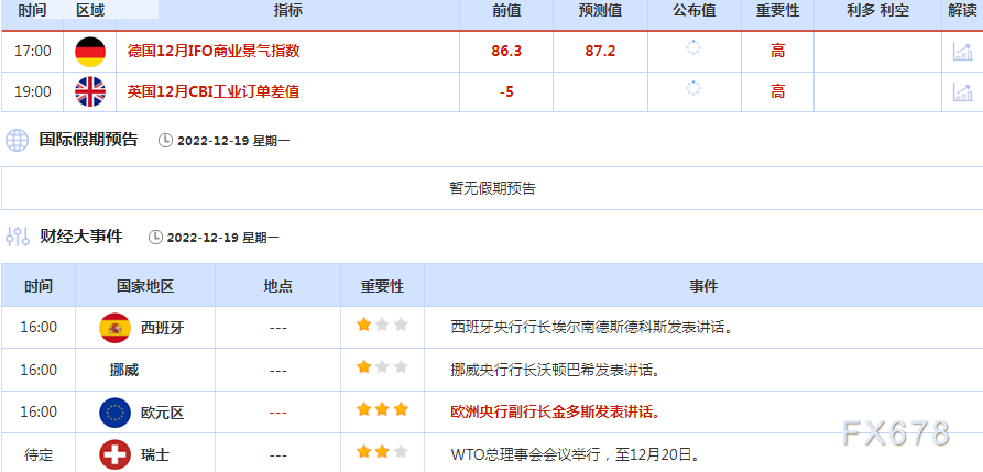 北京时间周一(12月19日),本周市场迎来日本央行利率决议,日本央行行长黑田东彦将召开货币政策新闻发布会,预计日本央行行长黑田东彦料将重申必须保持货币刺激政策,以确保持续通胀。此外,澳洲联储公布货币政策会议纪要,WTO总理事会会议将举行,至12月20日。
