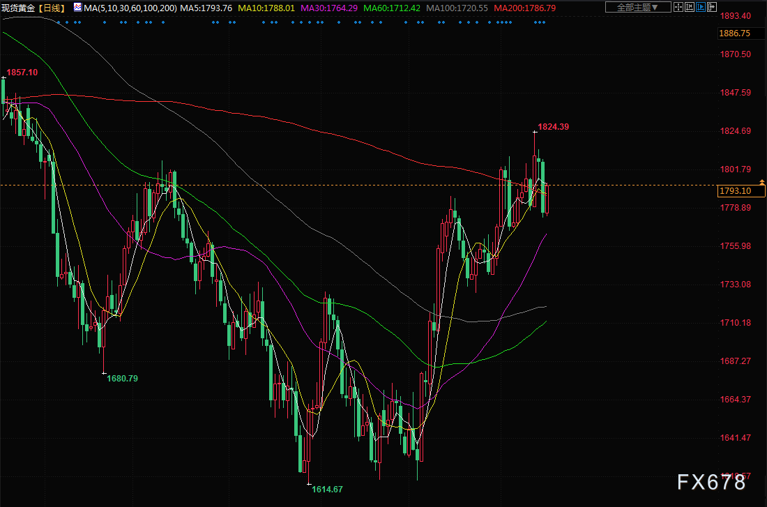 德国商业银行预计,在美联储本轮加息周期明确结束之前,黄金会向每盎司1750美元回落,并预计到2023年底金价会升至1850美元。