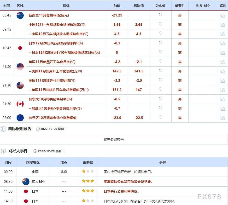 ②12月20日(周二)关键字:日本央行利率决议,欧元区12月消费者信心指数,澳洲联储12月会议纪要