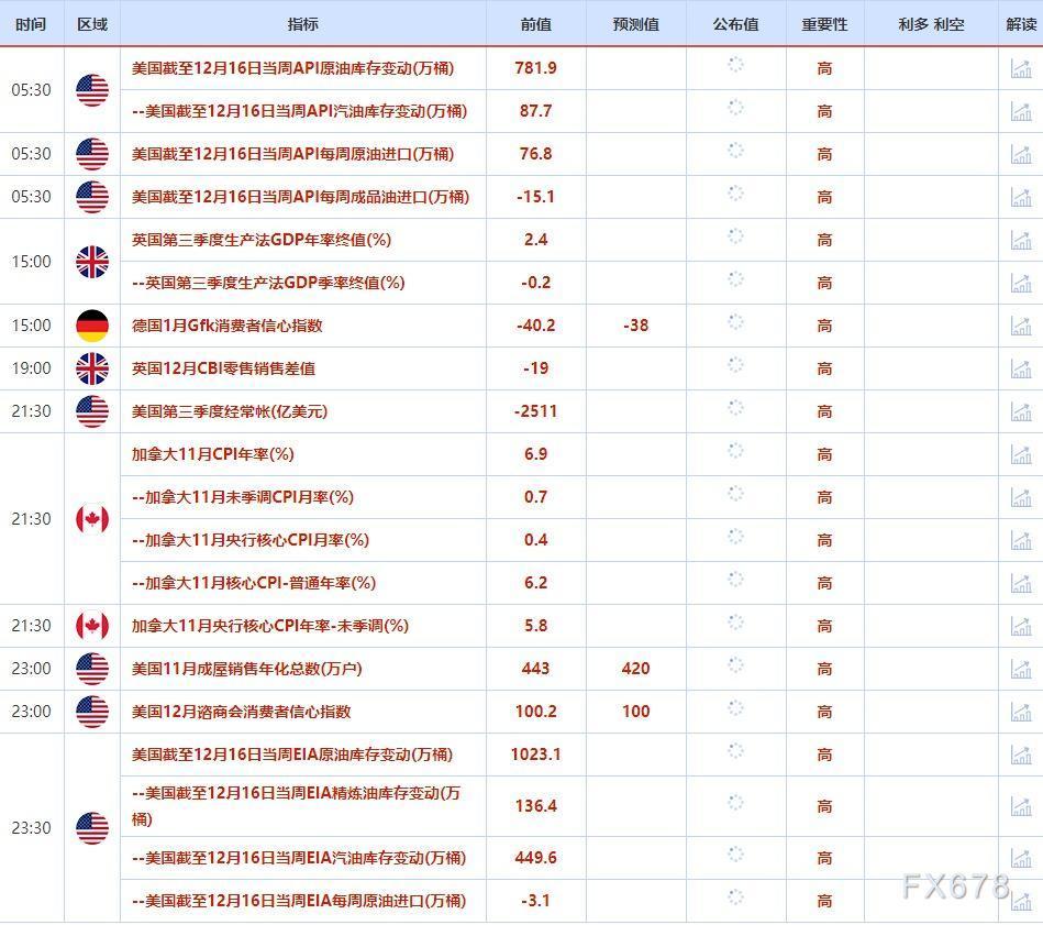 ③12月21日(周三)关键字:美国截至12月16日当周API原油和EIA库存变动,加拿大11月CPI