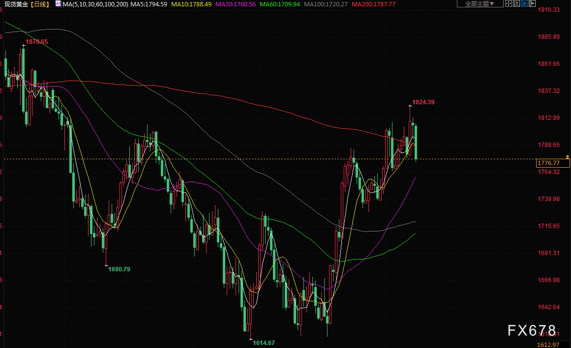 金价周四一度下跌多达2%,触及约一周以来最低,在美联储表示明年将进一步加息后,美元攀升。现货金下跌1.6%,至每盎司1777.88美元,稍早一度低见1771.89美元。