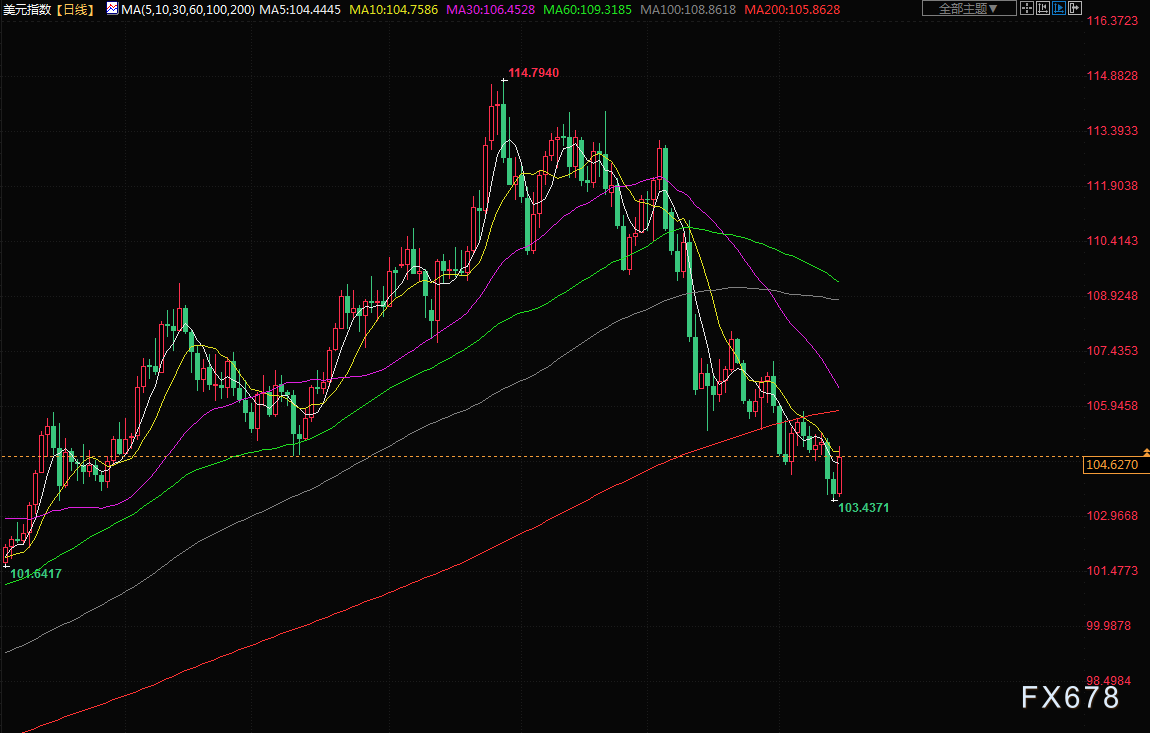 北京时间周五(12月16日),美元交投于104.60附近;美元周四上涨,投资者担忧美联储可能在明年继续加息导致经济衰退的风险;欧洲央行和英国央行周四都加息50个基点,英镑兑美元大幅下跌,因为投资者认为英国央行已经接近加息的终点;金价下跌,触及约一周以来最低;油价下滑约2%,因为美元走强和全球主要央行进一步加息,令交易商担心燃料需求前景。