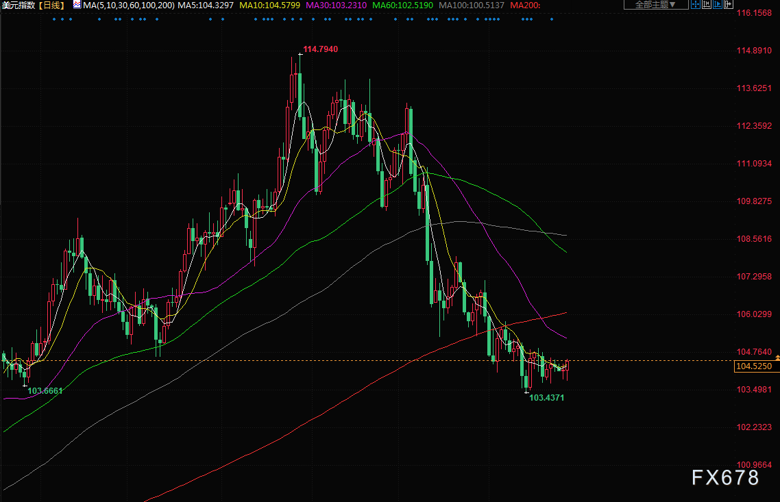 美元指数周三上涨0.202%至104.420。两周前,当美联储放缓加息步伐时,美元指数创下了103.44的六个月低点。美元兑日元触及一周高点,受美债收益率跳升和投资者预期亚洲经济增长将因新冠防控措施放松而反弹提振。