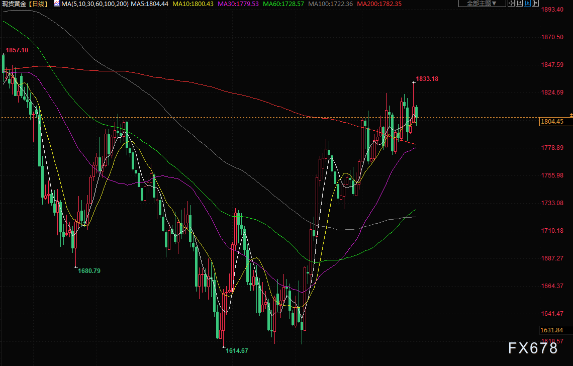 美元指数和美国10年期公债指标收益率都保持在盘中高点附近,对黄金需求造成压力。 黄金从9月份创下的两年多低点上涨了约200美元,因预期美联储将放缓加息步伐,增加了这种非孳息资产的吸引力。