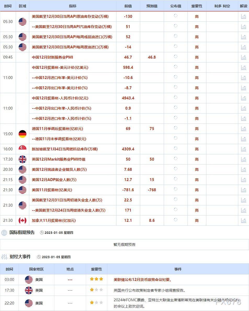 1月5日,美国将公布12月货币政策会议纪要,投资者可以从中了解美联储官员的想法,以及未来货币政策的相关线索。