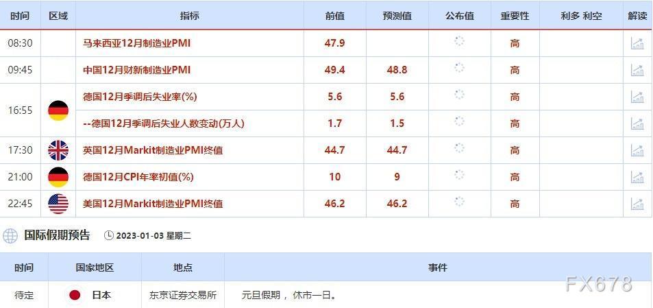 ①1月2日(周一)关键字:欧元区12月Markit制造业PMI终值,元旦休市公告