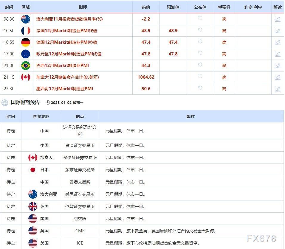 1月2日当天,投资者还需关注中国、加拿大、日本、澳大利亚、英国和美国元旦假期的休市公告。
