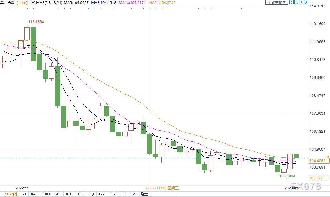北京时间1月4日13:11,美元指数报104.44