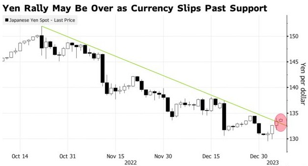 加拿大帝国商业银行驻香港策略师Patrick Bennett表示,强于预期的美国就业数据可能导致美元兑日元重新逼近12月28日的高点134.50,甚至有可能触及其200日移动均线。