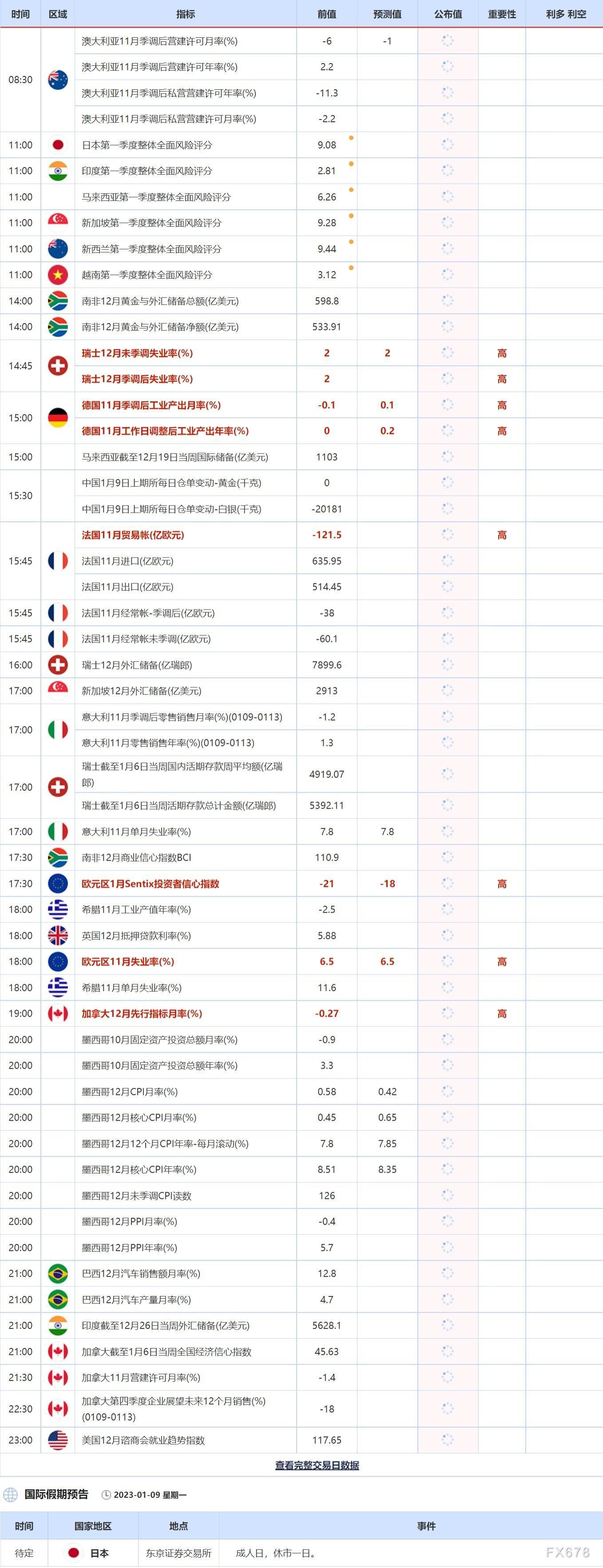 1月9日重点数据和大事件前瞻
