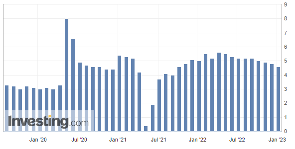 薪资方面,12月平均每小时工资环比上升0.3%,同比上升4.6%,为2021年夏天以来的最小涨幅,均不及预期的0.4%和5%,较11月0.4%和5.1%的增速也有所下滑,表明薪资对通胀地压力可能正在减弱。