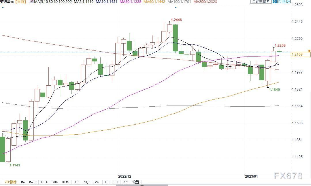 市场分析师James Skinner称,英镑兑美元已经大幅扭转了进入2023年后的跌势,如果全球市场继续上涨,本周汇价可能会进一步上涨,1.23是技术阻力位。但是,美联储官员的公开言论,本周四将公布的美国12月CPI数据是英镑兑美元的潜在风险。