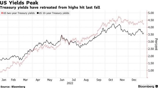目前,美国国债收益率几乎与上月美联储召开利率决议前夕持平。美联储官员在去年12月上调了利率峰值预测。鲍威尔强调,19人中有17人预测利率峰值将达到5%或更高,高于当前市场利率水平。