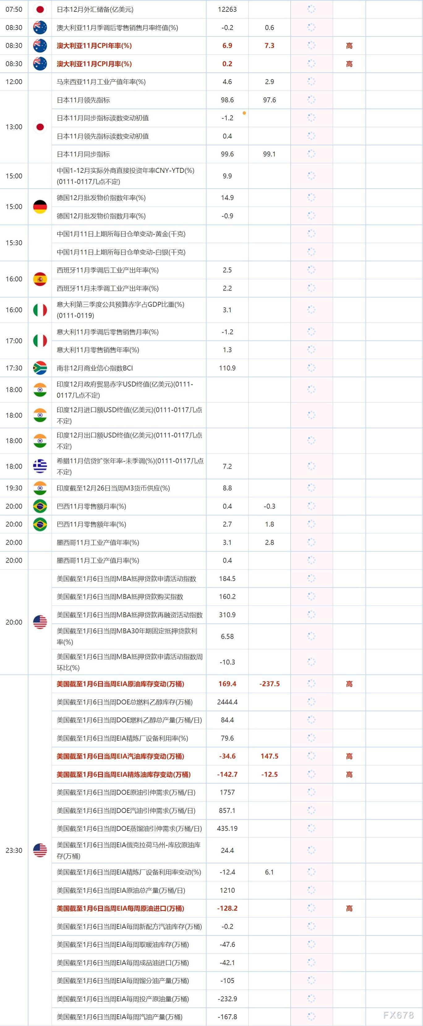1月11日重点数据和大事件前瞻