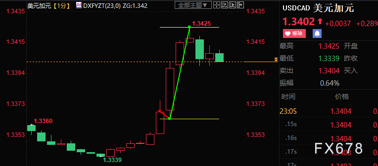 加银如期进一步放缓加息,美元兑加元短线上涨55点