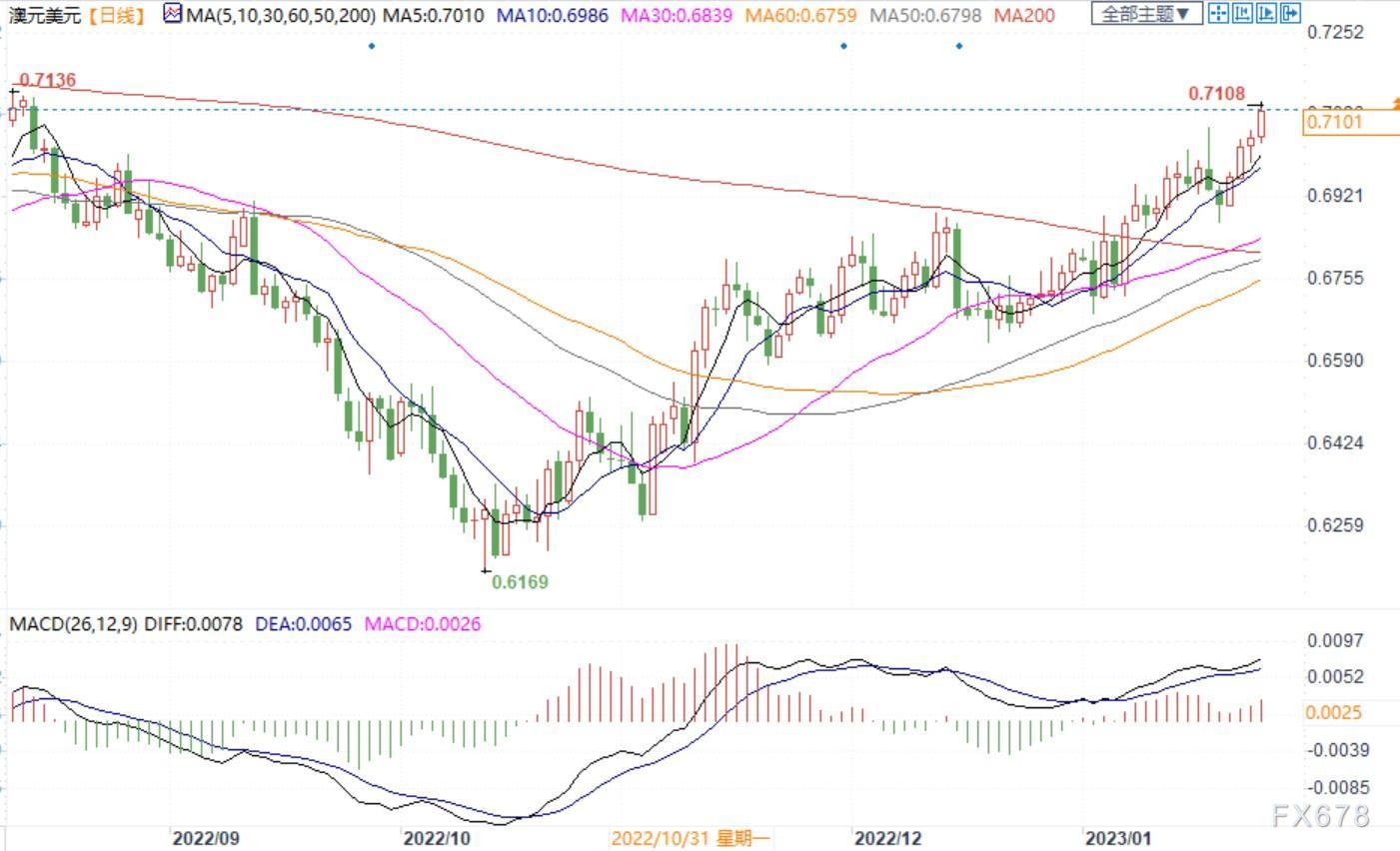 北京时间1月25日13:34,澳元兑美元报0.7101/02