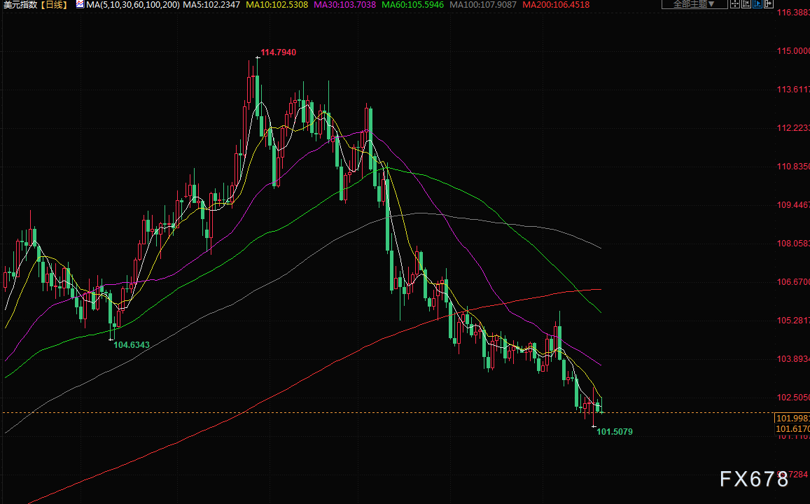 美元上周五震荡于102附近,美联储理事沃勒支持在下次会议上将加息幅度缩减到25个基点,这无异于巩固了联储再次放缓货币紧缩步伐的预期。沃勒是联储主要的通胀鹰派人士之一,也是去年激进加息的倡导者。