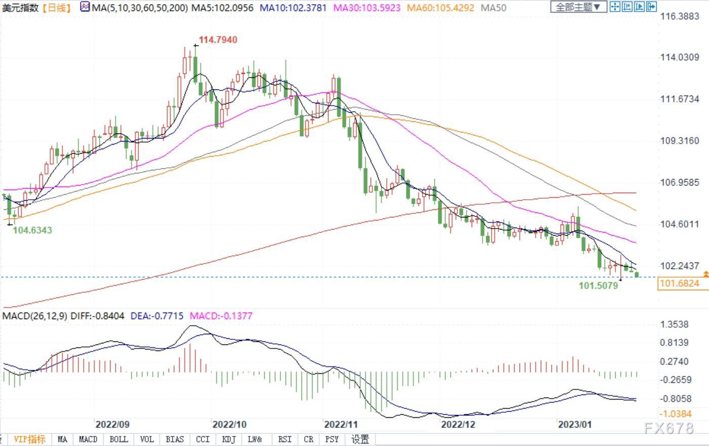 北京时间1月23日11:04,美元指数报101.68