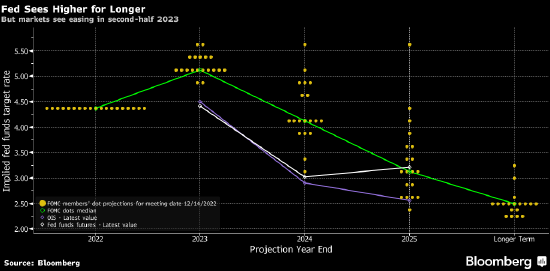 通胀正在放缓,尽管仍远高于美联储2%的目标。12月份消费者价格上涨6.5%,为一年多来最慢增速,表明美联储激进的紧缩政策正在奏效。这一结果符合市场预期。数据显示,市场目前预计利率将在6月份于4.9%见顶,接下来可能会降息。