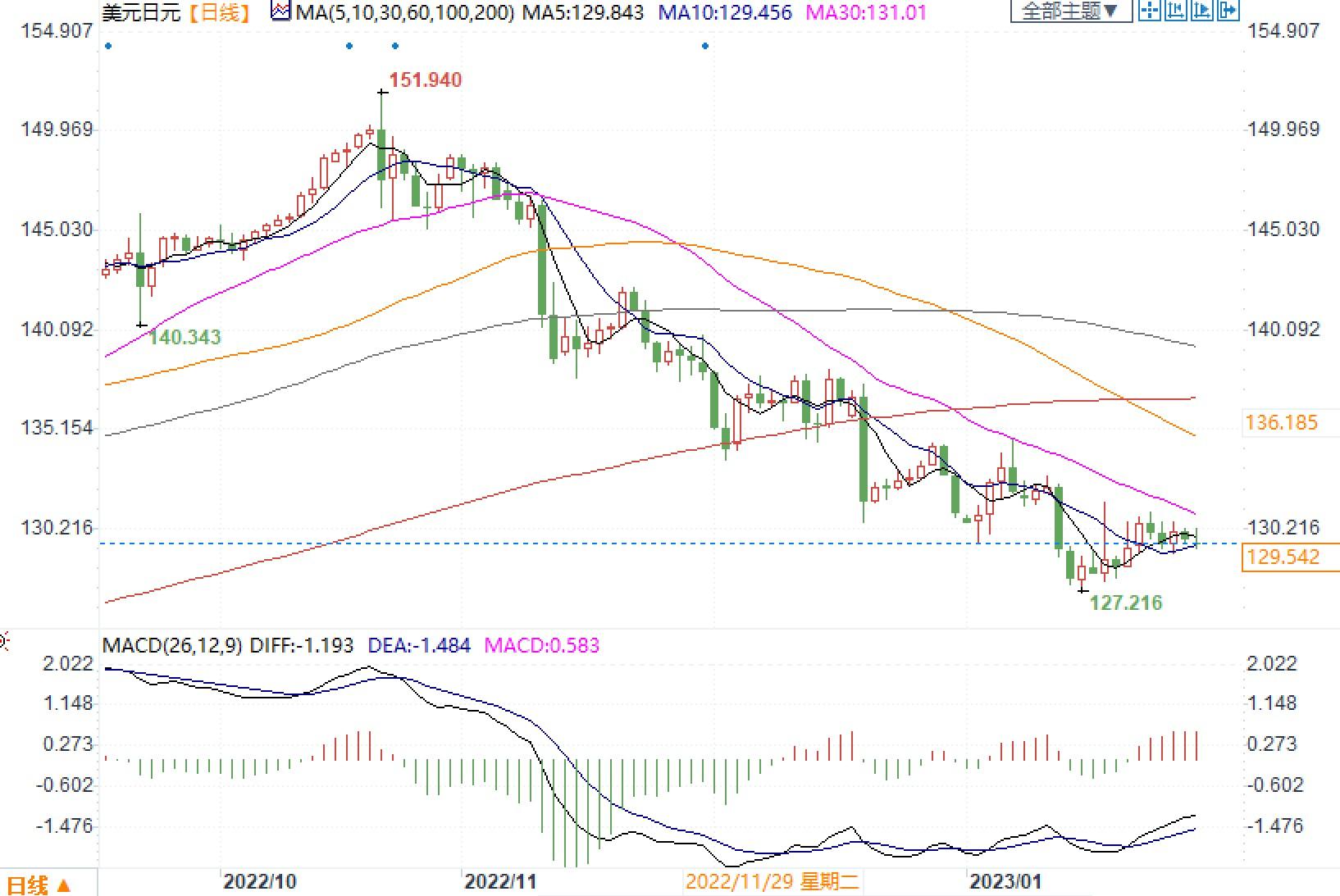 北京时间1月30日14:57 美元兑日元 报 129.542