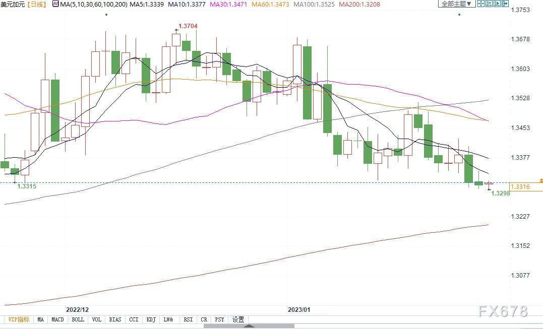 北京时间1月30日10:54,美元兑加元报1.3316/18