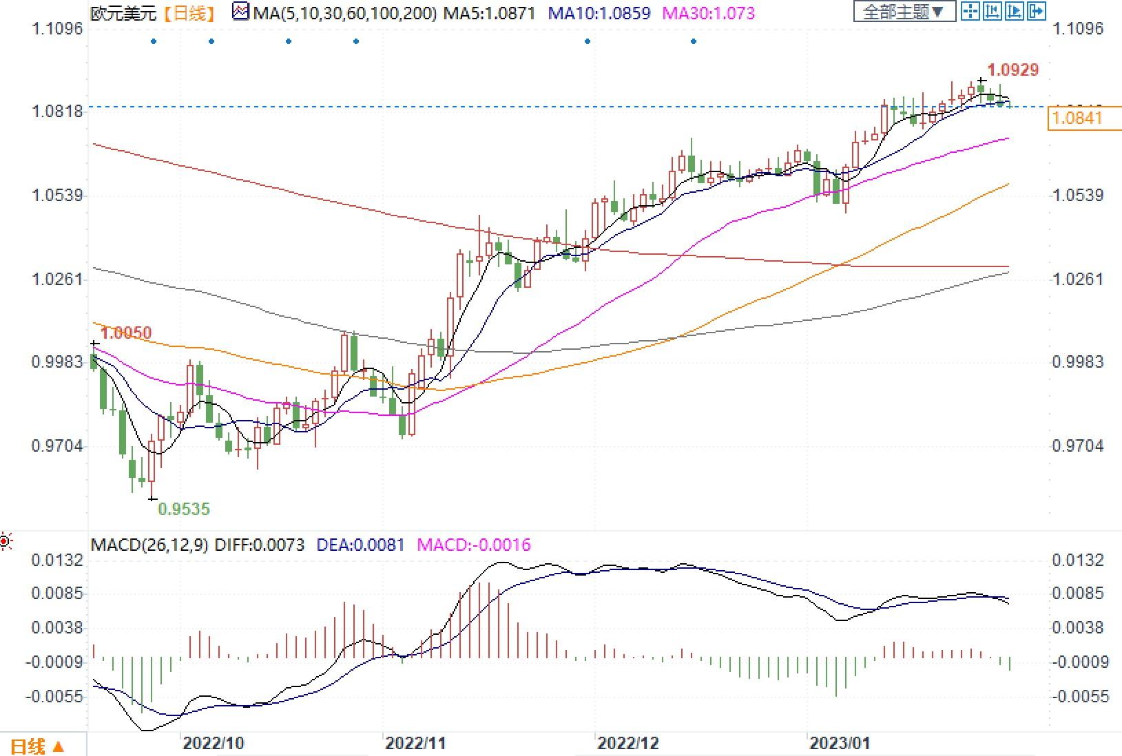 与此同时,市场还将关注,美联储是否会不遗余力扭转最近由于债券收益率下跌导致的金融状况放松局面,导致欧元兑美元自2022年11月来大幅上涨。