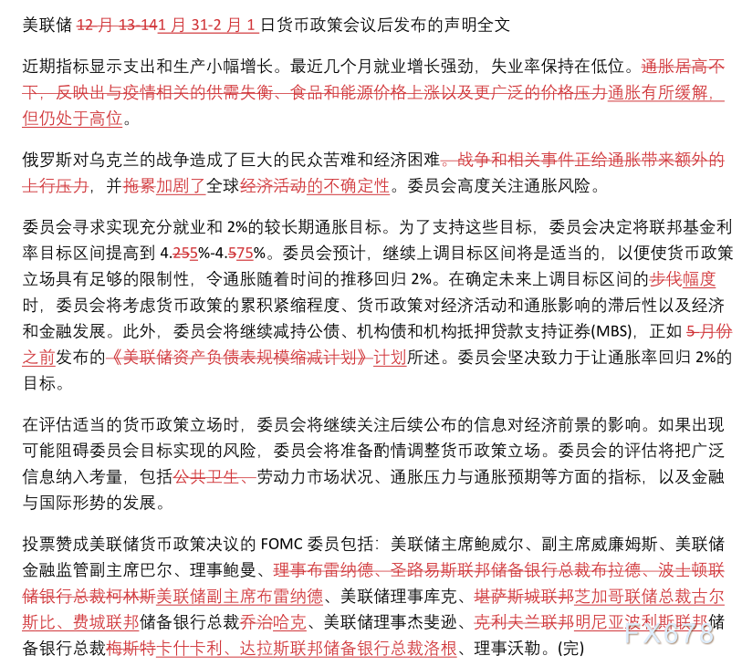 美联储利率决议全文和近两次声明对比