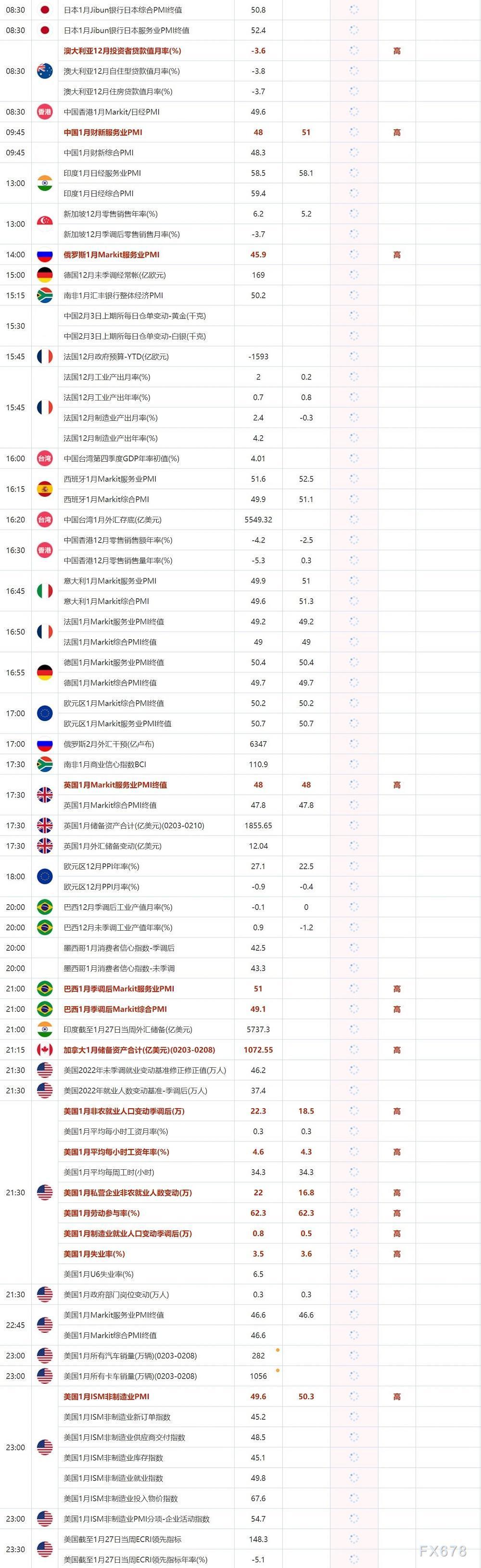 2月3日重点数据和大事件前瞻