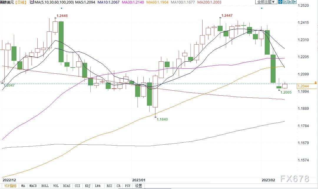 综合以上消息可以看出,英国央行在3月份继续加息的概率较大,但幅度可能缩减为25个基点。英镑兑美元在2月6日一度创下1.2005的近一个月低点,但英国央行的加息预期给英镑带来支撑,限制其下行幅度。