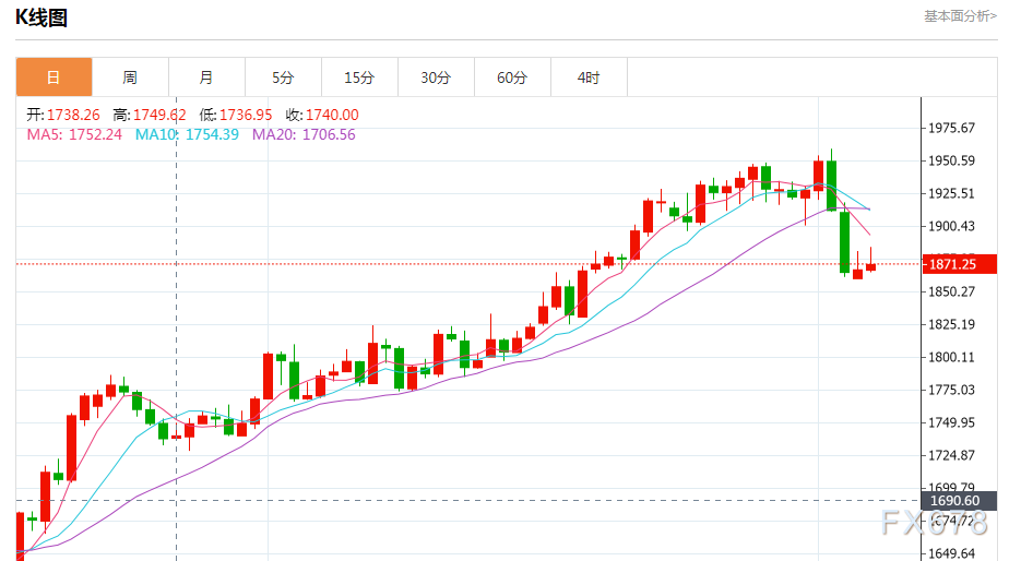 明尼亚波利斯联邦储备银行主席卡什卡利稍早表示,美联储可能将不得不把利率提高到至少5.4%,以抑制高通胀。德国商业银行(Commerzbank)分析师预测,到年中,金价料达到1,850美元,年底料达到1950美元。