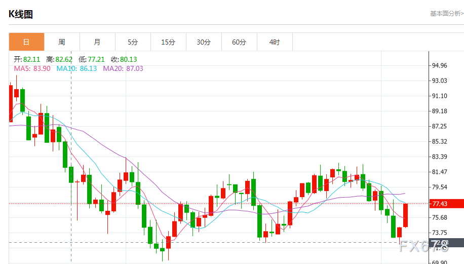 商品收盘情况:布伦特原油期货结算价上涨3.3%,报每桶83.69美元,美国原油期货结算价上涨4.1%,报每桶77.14美元;美国期金收涨0.3%,结算价报1884.80美元。