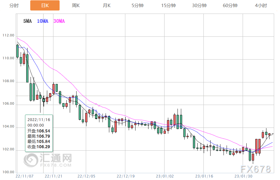 美元指数小幅上涨,报103.38,上一交易日曾下跌。英镑上涨0.2%,至1.207美元,从周二触及的一个月低位1.196美元回升。在上周五的就业报告显示1月美国非农就业岗位增加51.7万个后,美元出现了短暂的反弹。这推动美元指数在周二触及103.96的一个月高位,投资者提高了对美联储需要继续加息的预期。